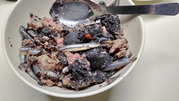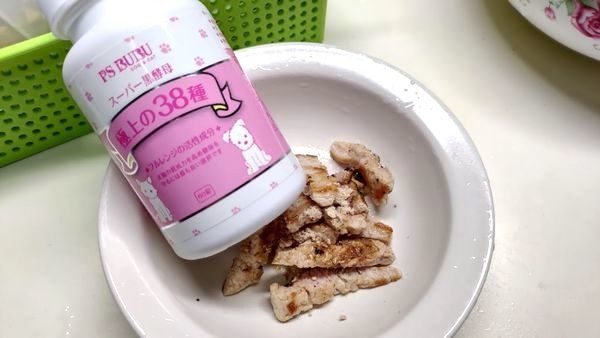 準備鮮食的時候順便拌進去(例如下面的生食主食或豬排點心)。