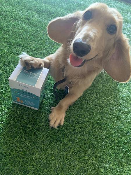 毛爸還拍下臘腸豆豆和益口潔的合照